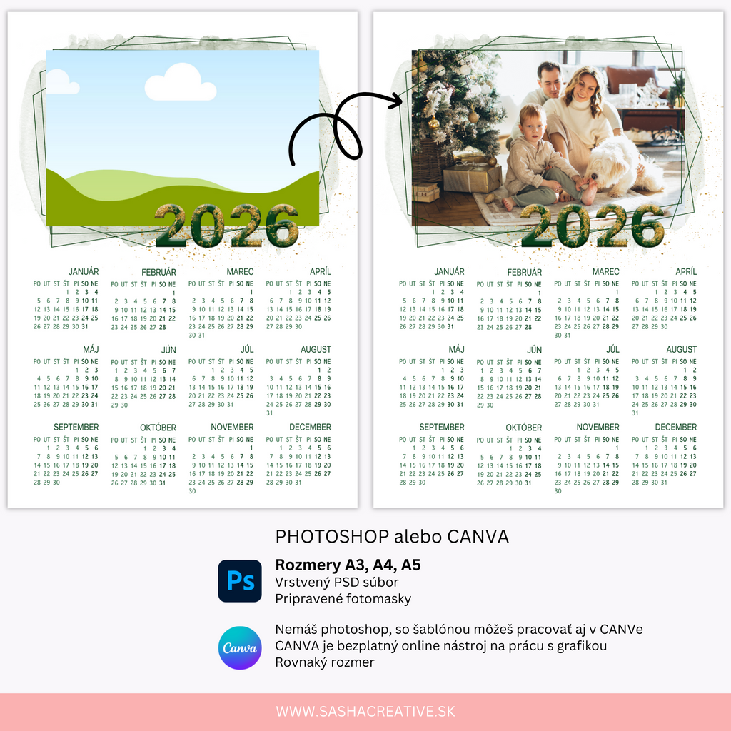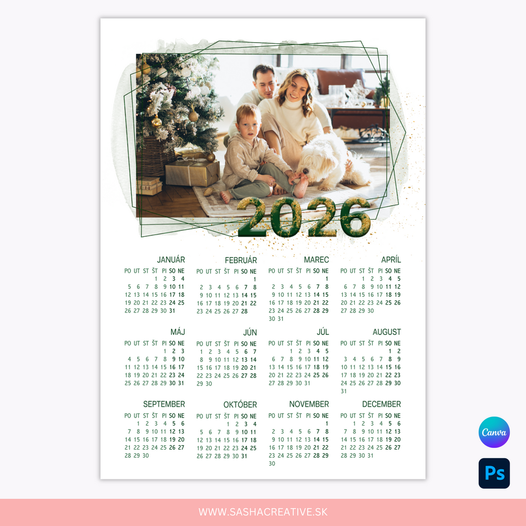 S touto fotokalendárovou šablónou pre rok 2026 si jednoducho vytvoríš vlastný kalendár s tvojimi fotkami.