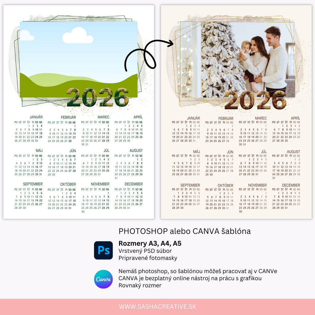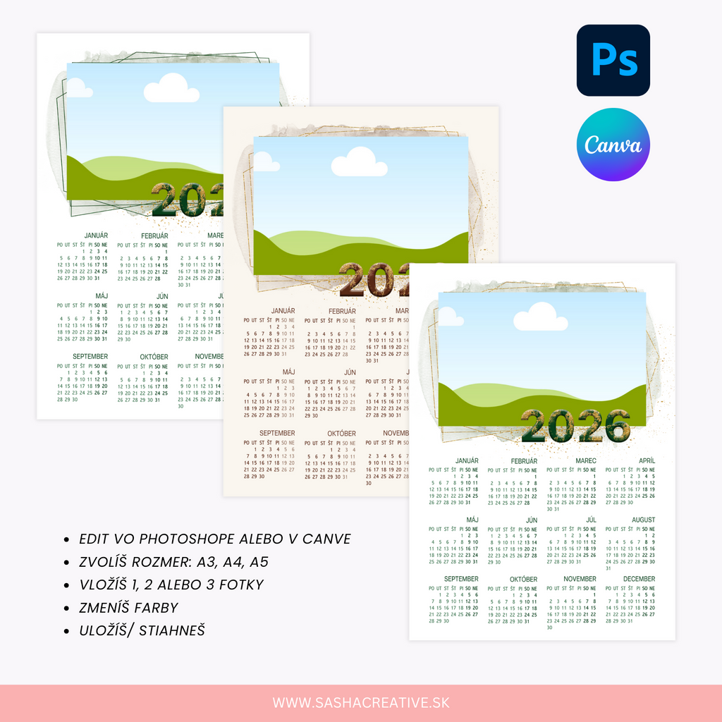 Kalendár 2026 | A3, A4, A5 SLOVENSKY+ČESKY sparkle