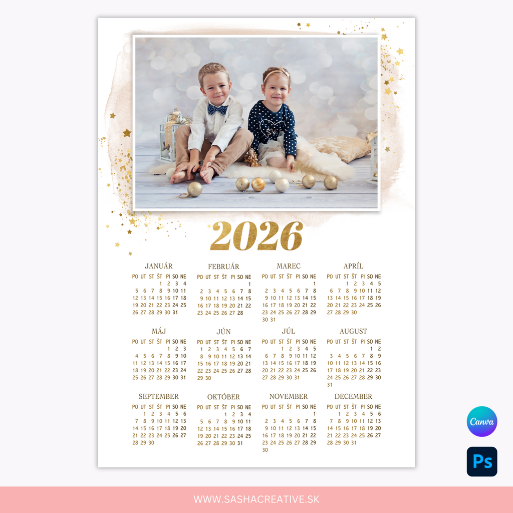 S touto fotokalendárovou šablónou pre rok 2026 si jednoducho vytvoríš vlastný kalendár s tvojimi fotkami.
